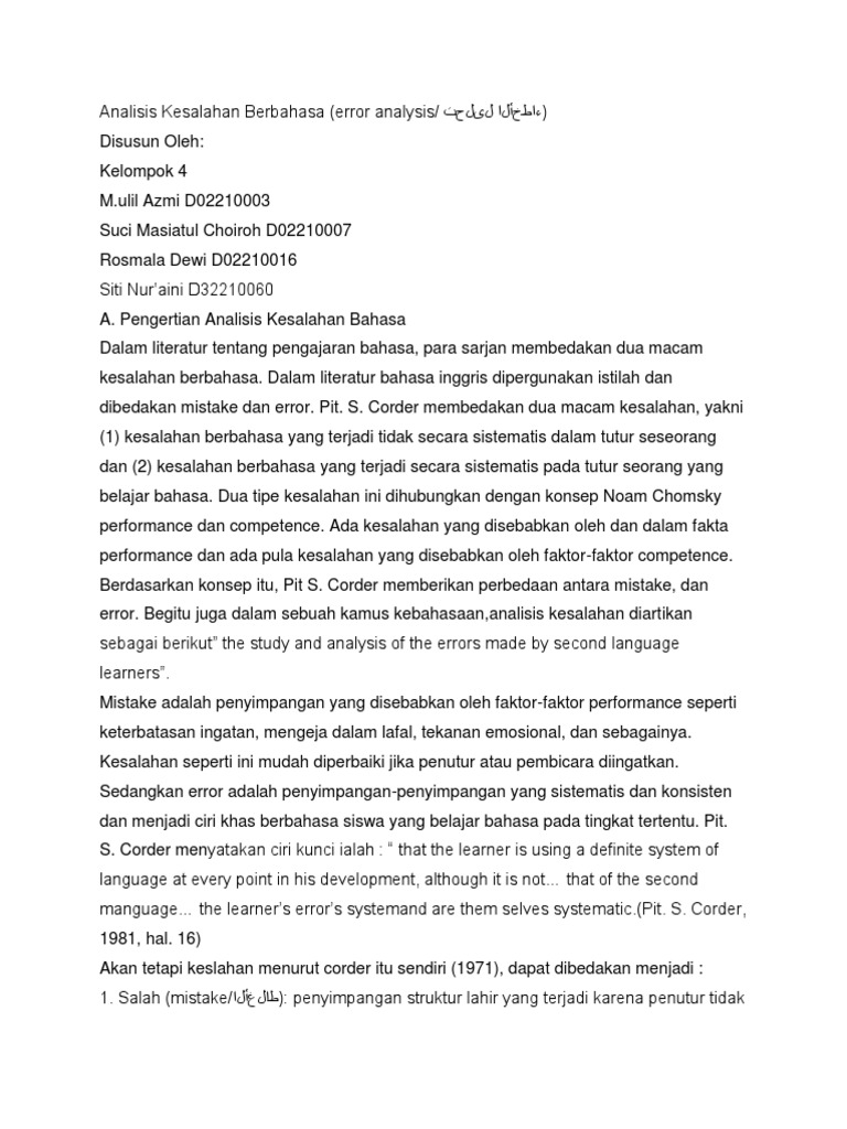 Analysis of students' error (the case of the fifth grade students of sdn slawi kulon 03 in the academic year 2006/2007) a final project english department faculty of languages and arts Anak kelas 10, yuk belajar materi virus si makhluk kecil ajaib ini! So, it is worth studying. People use language to be able to communicate with others properly in many fields and many places. An analysis of punctuation errors in the background of the skripsi of english education department of muria kudus university by khuliyatul hidayah nim 200932292 department of english education faculty of teaching training and education university of muria kudus 2013. In using 'must' and 'have. 99 south teluk betung bandar lampung, lampung 34165 bandar lampung, april 1st, 2016 heru susanto, s.kom maju terus, ltd soedirman street no. Seharusnya has karena kalimat adalah contoh kalimat present tense menggunakan kata kerja.; Über 7 millionen englischsprachige bücher. He third level of errors. 1.1 background of the study. Random errors cause positive and negative deviations from the average value of a measurement. Penggunaan 'concerning' dalam kalimat dia atas tidak tepat karena kata itu adalah preposition, bukan adjective.seharusnya kata tersebut diganti dengan kata 'worrisome' di dalam kalimat.